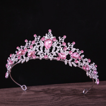 Luxury Hair Jewelry Accessories Handmade Pink Crystal Rhinestone Tiara Wedding Crown for Bride