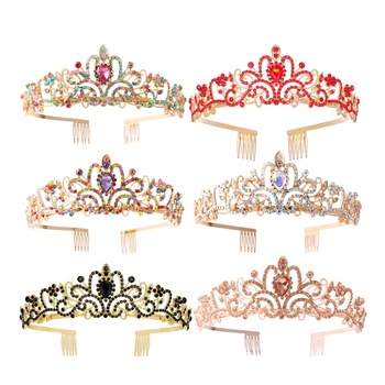 Bán Buôn Đồ Trang Sức Cưới Pha Lê Tiara Đầy Màu Sắc Rhinestone Cô Gái Vàng Vương Miện Cưới Với Lược